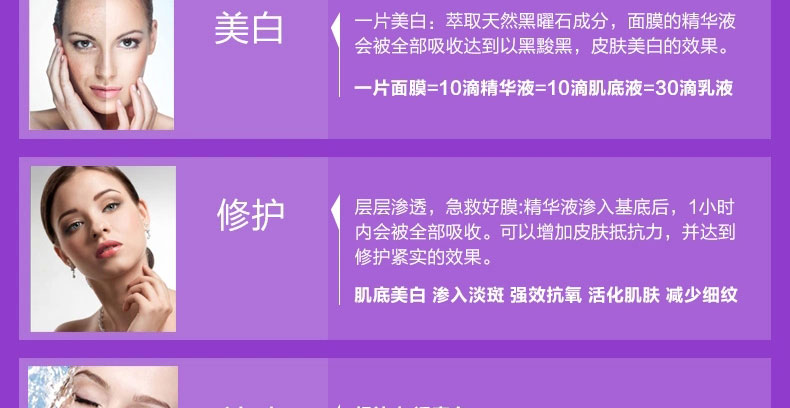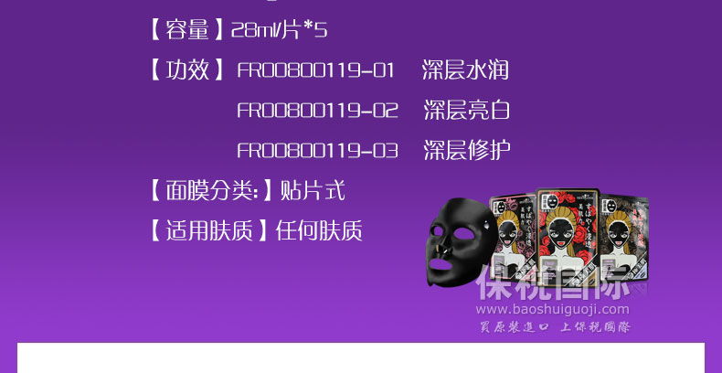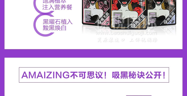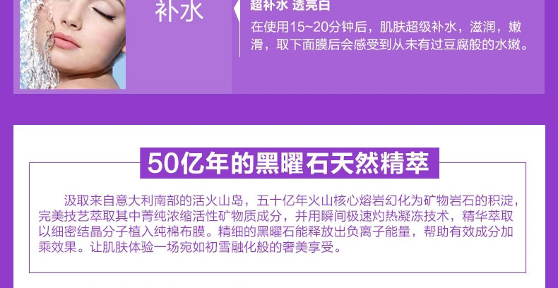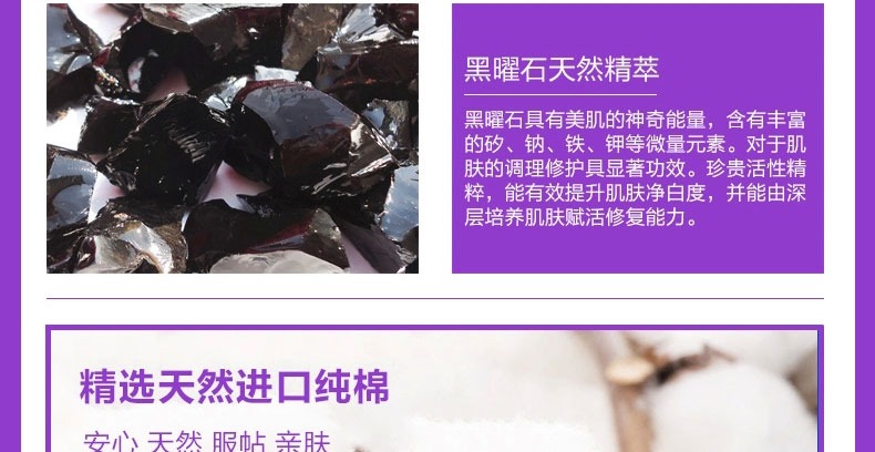 SEXYLOOK極美肌 純棉黑面膜 奔跑吧兄弟angelababy同款 水潤/亮白/修護(28ml/片*5)—— 1.把珍貴的黑曜石精華植入純棉布膜,黑曜石的活膚能量,不僅能平衡深層凈化毛孔,同時還能促進肌膚底層的保濕、明亮、緊實。 2.整齊的切口,可以讓我們輕松滴打開面膜袋,也能最大程度的保留美美的精華液不會溢出! 3.100%純棉的質地,充分吸收滿滿滴精華液,灌注滿滿美肌成分。 |