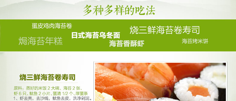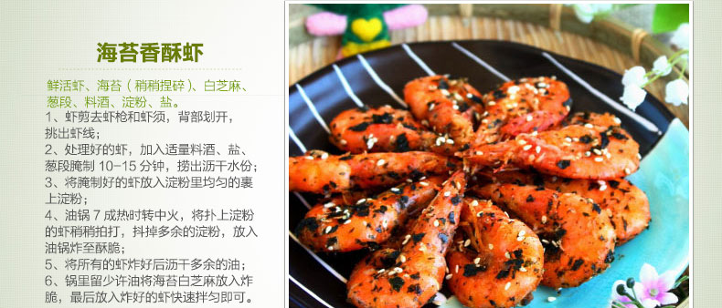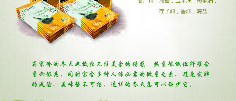 海苔,玉米油,橄欖油,荏子油,香油,海鹽 |