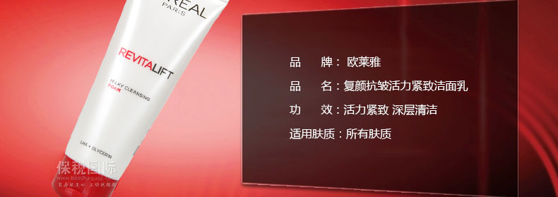 歐萊雅洗面奶 復(fù)顏抗皺活力緊致潔面乳 活力緊致 深層清潔 —— 1.活力緊致,清潔肌膚同時(shí)改善肌膚暗沉粗糙現(xiàn)象。 2.可立即卸除淡妝,徹底清潔肌膚同時(shí)改善肌膚暗啞粗糙現(xiàn)象。 3.去除肌膚瑕疵,為接下來的抗老護(hù)理提供最佳肌膚狀態(tài),使肌膚完美潔凈。 |