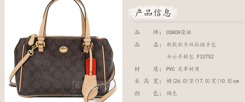 COACH/蔻馳 新款秋冬雙拉鏈手包女士手提包 F33752—— 1 雙拉鏈設計,風格迥異。 2 歐美時尚風格,給您高端的品味。? |