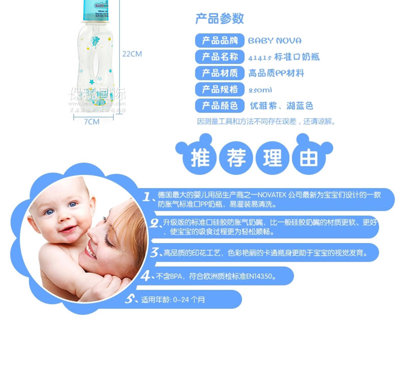 - 奶瓶容量:250ML