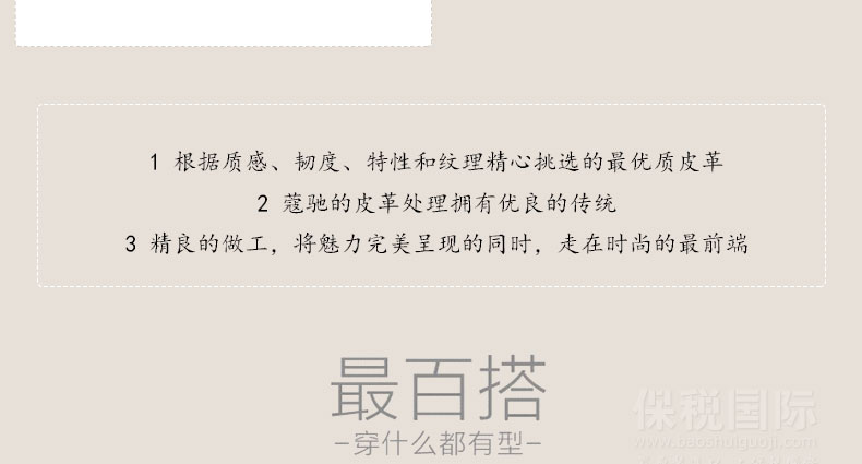 | 服務承諾: 保稅國際向您保證所售商品均為原裝進口商品,與您親臨國外商場選購的商品享受同樣的質量保證。 注:網站商品均來自國外,海外直郵到保稅物流中心,保稅物流中心負責把貨物發送您的手中,因為境外某些品牌經常換包裝,所以無法保證貨物與商城圖片、產地、附件說明一致,但保證是原裝正品,并且與當地市場上同樣主流新品一致,若本商城沒有及時更新,請大家諒解! |