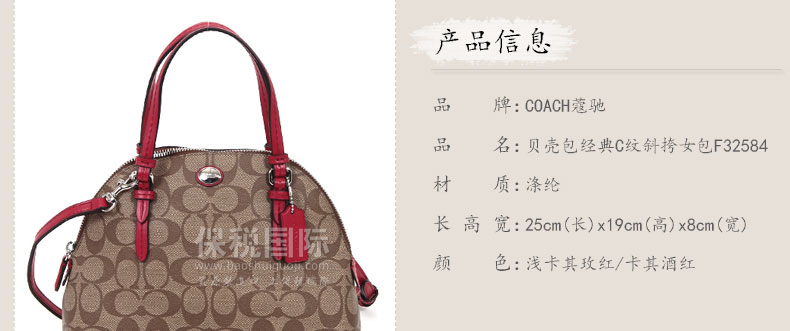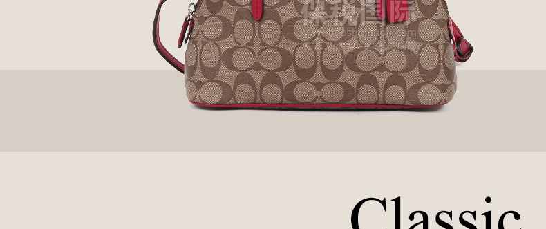 美國 Coach蔻馳 小號貝殼包 經(jīng)典C紋斜挎女包 淺卡其玫紅/卡其酒紅 F32584 |