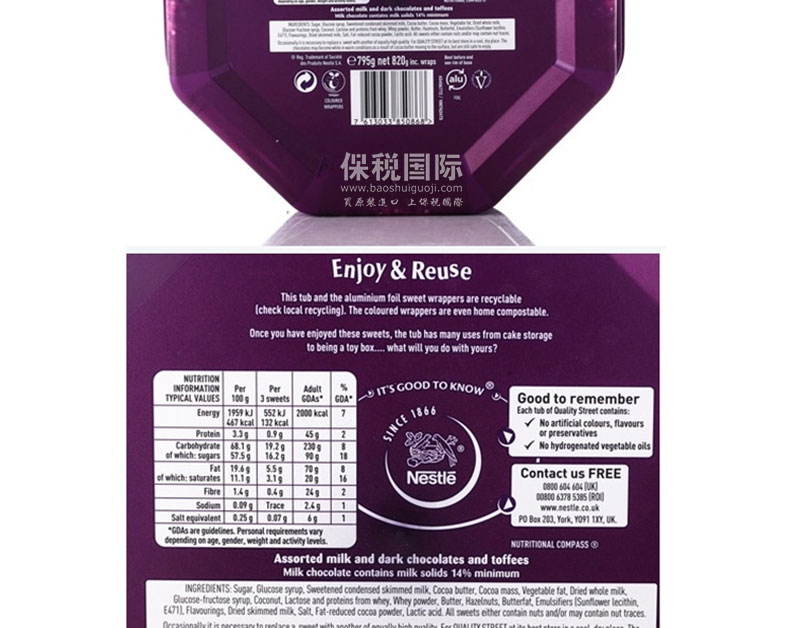 英國Quality Street雀巢花街 什錦巧克力太妃糖果禮盒 香甜可口 |