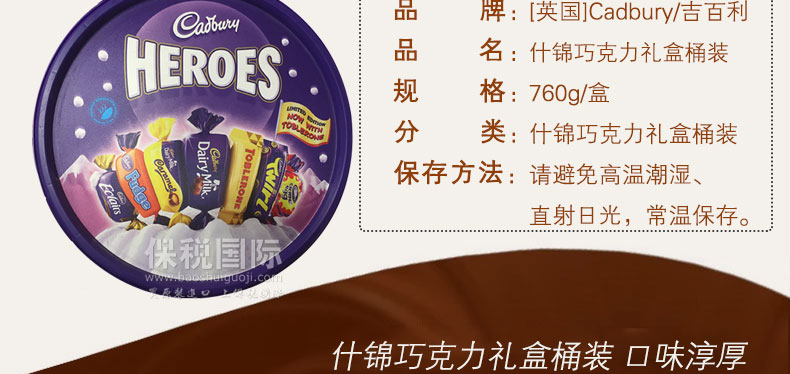 英國(guó) cadbury Heroes吉百利 什錦巧克力禮盒桶裝 口味淳厚 |