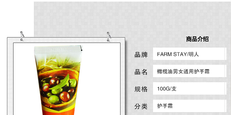 FARM STAY明人 橄欖油男女通用護(hù)手霜 美白滋潤 保濕修復(fù) 100g/支 |