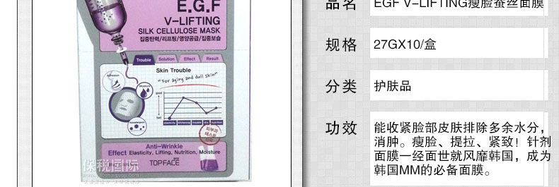 韓國(guó)TOPFACE EGF V-LIFTING瘦臉蠶絲面膜 |