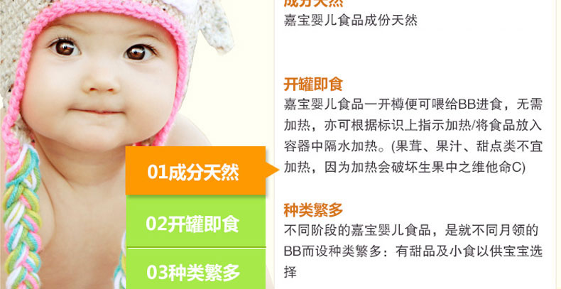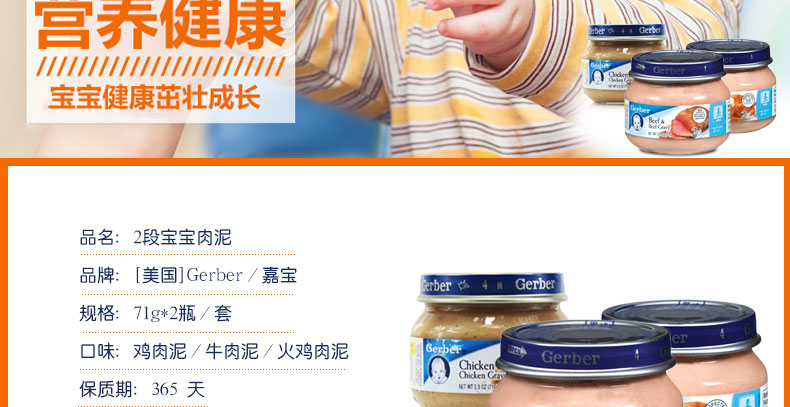3罐裝 嘉寶Gerber 2段寶寶肉泥 嬰幼兒寶寶輔食 補充鈣鐵鋅 71g*3/套—— .嘉寶嬰兒食品成分天然,均不采用基因改造原料。 2.嘉寶嬰兒食品一開樽即可給寶寶進(jìn)食,無需加熱。 3.嘉寶為不同階段吧BB設(shè)計不同的嬰兒食品,有各種甜品和小食可供選擇。 |