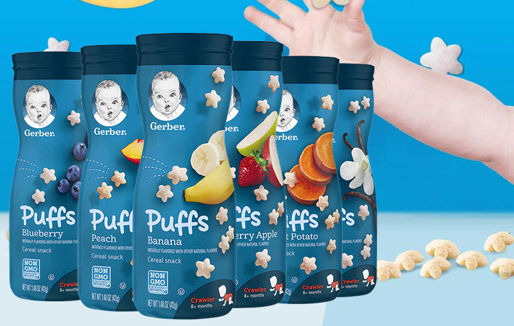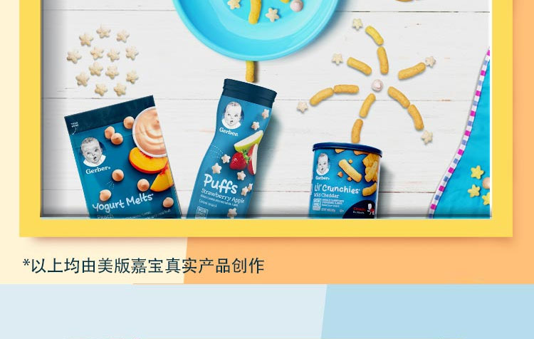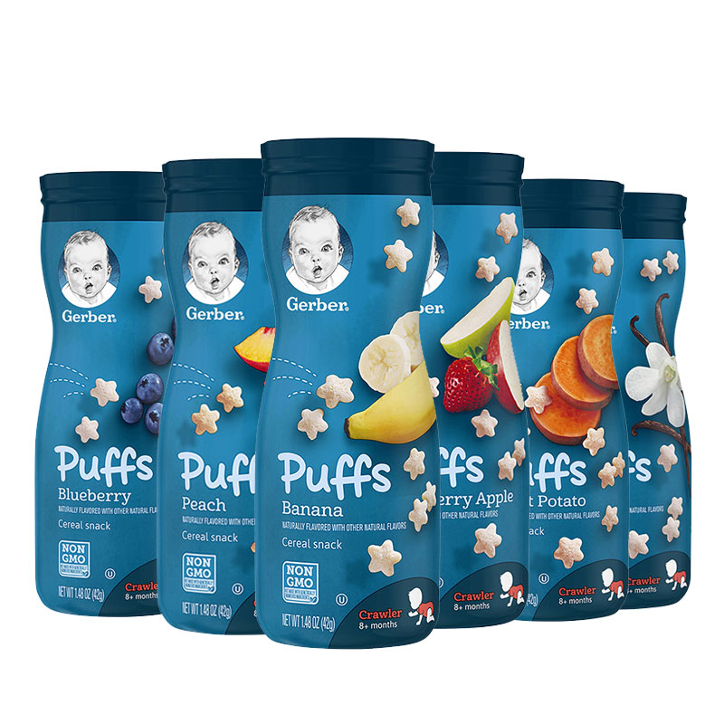 母嬰、玩具樂器> 營養輔食> 寶寶零食> 2罐裝 美國嘉寶GERBER星星泡芙 寶寶輔食 嬰兒泡芙 多種口味寶寶零食42g*2 兩盒裝