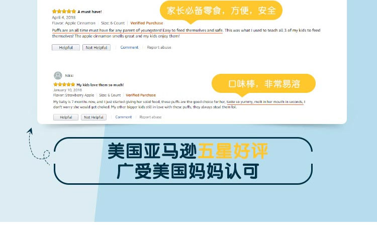 只有營養均衡寶寶才會更健康。水果口味的星星泡芙,無論大人還是孩子只要吃過就會迷上它,入口即化,不用擔心會卡到寶寶的喉嚨??蓯鄣男切窃煨停贸院猛妫黾訉殞毷秤?。讓厭煩奶粉的寶寶體驗新的口味。
