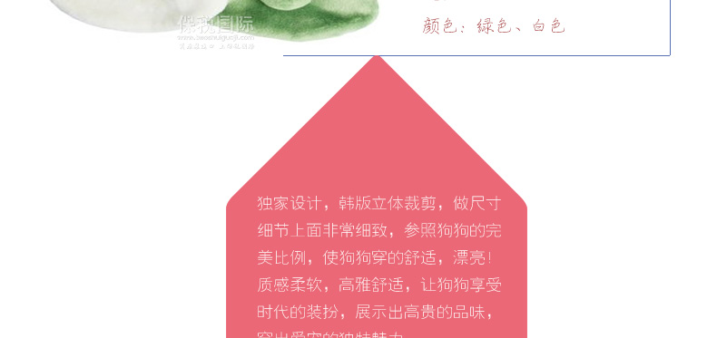 1、ITS DOG自2003年創立以來,已經9年了。魯道夫外套是2004年冬天“出生的” 至今已經8歲了。ITS DOG被大眾熟知,也是從這件魯道夫上衣的熱賣開始。8年期間,這件魯道夫上衣作為冬天最熱門的商品,對ITS DOG的發展做了很大貢獻。未來,無論原材料和人工費用如何高,我們ITS DOG會一直秉承用合理的價格賣質量好的衣服的理念。 1、將衣服披在安靜站立的狗狗身上; 2、為狗狗的前肢穿上衣服; 3、再為狗狗的后肢穿上衣服(如果帶后褲); 4、將狗狗的前肢抬起,然后用另一只手把位于狗狗腹部的拉鏈或者粘扣系好; 5、穿上衣服,抑制漂亮帥氣的酷狗就閃亮登場了。 |