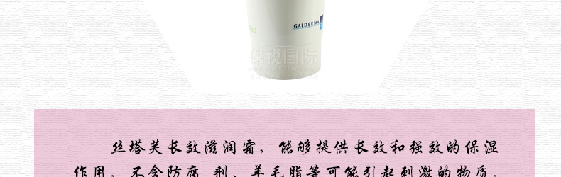 Cetaphil絲塔芙 舒特膚長效潤膚霜 保濕潤膚乳 高效保濕霜—— 1.補(bǔ)充皮膚脂質(zhì)的必須脂肪酸和亞麻油酸,重建皮膚保水功能。 2.容易涂抹,質(zhì)地不油膩,提供長效保濕。 3.含純水,配方單純,不再增加敏感皮膚的負(fù)荷。 |
