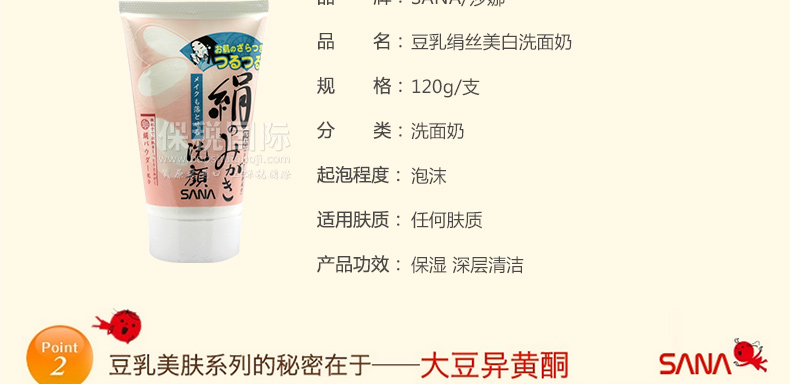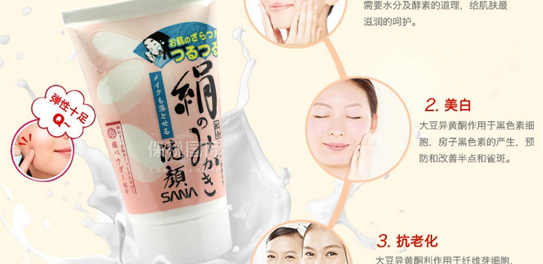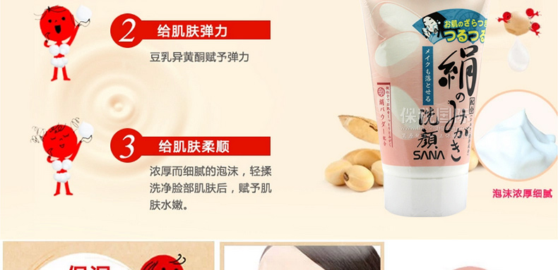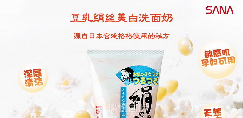 日本 SANA莎娜 豆乳絹絲美白洗面奶 保濕美白潔面乳 清爽潔凈不緊繃 —— 1.蠶絲內含有大量的氨基酸,發揮強勁的保濕效果。 2.絹配方微粒子令您的肌膚清爽潔凈不緊繃,卸妝洗顏一次搞定。 |