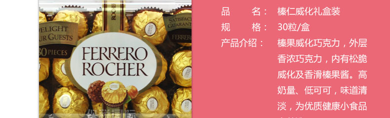 意大利 費列羅巧克力 榛仁威化禮盒裝 結婚喜糖散裝零食 T30(30粒/盒) |