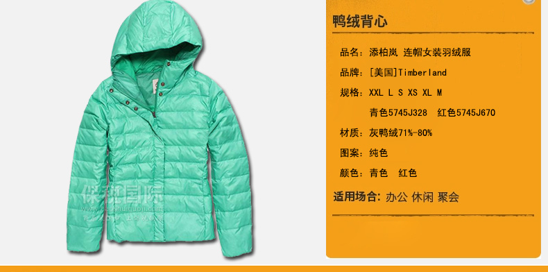 Timberland 添柏嵐 連帽女裝羽絨服 青色5745J328? 紅色5745J670 |
