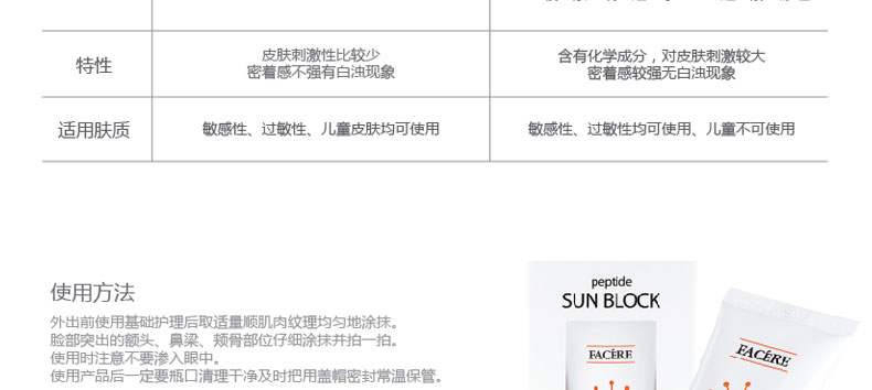 韓國FACERE PEPTIDE防曬隔離霜60ml SPF50 PA+++ |