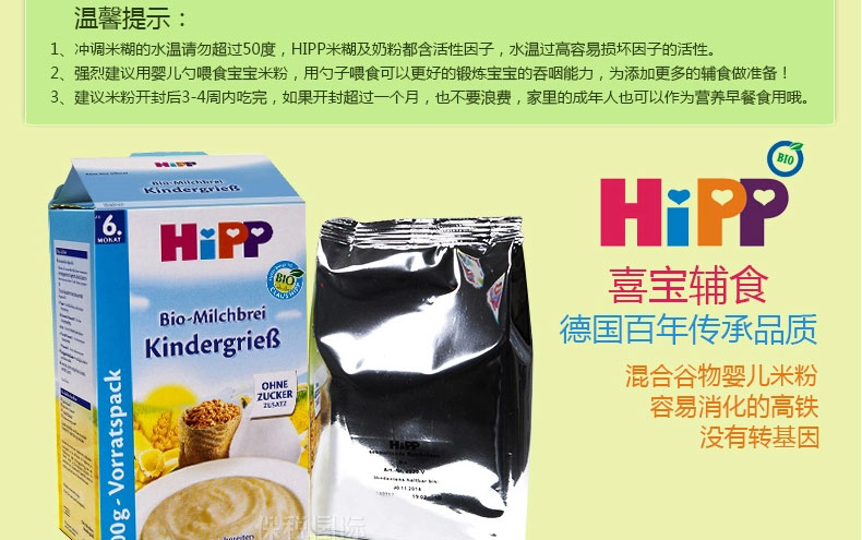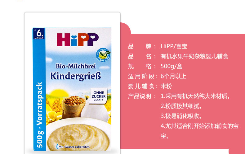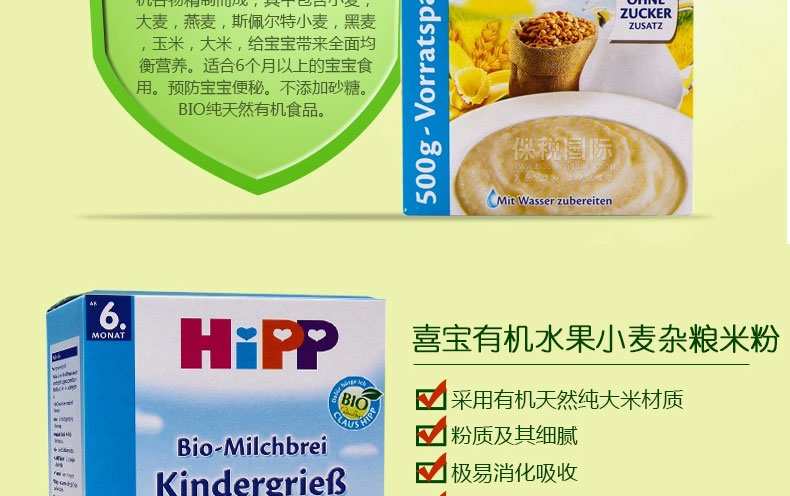 2盒 德國 Hipp喜寶 有機(jī)水果牛奶雜糧嬰兒輔食 高鈣鐵鋅米粉 6個月 |