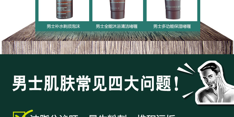 男士補(bǔ)水剃須泡沫35ml 男士全能沐浴清潔啫喱30ml 男士多功能保濕啫喱15ml |