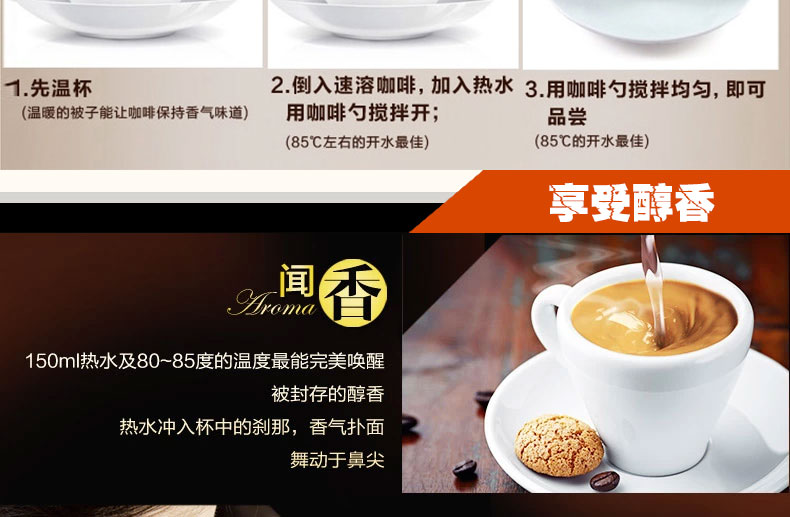 比利時Everyday 意大利卡布奇諾 朱古力咖啡 巧克力咖啡 —— 1.咖啡要趁熱飲用,因?yàn)樗淖涛杜c香氣會隨著冷卻而打折扣。 2.喝咖啡不僅要適溫也要適量,一般注入杯中約七、八分,恰好的份量不僅使味道活現(xiàn),飲用時也利落輕巧。 |