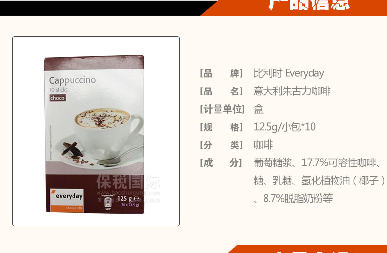 比利時Everyday 意大利卡布奇諾 朱古力咖啡 巧克力咖啡 |