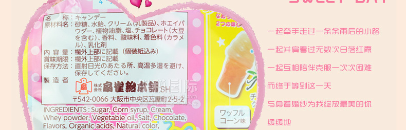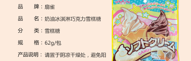 日本 扇雀奶油冰淇淋巧克力雪糕糖 香草+巧克力味 2味雪糕糖—— 請置于陰涼干燥處,避免陽光直射及高溫 |