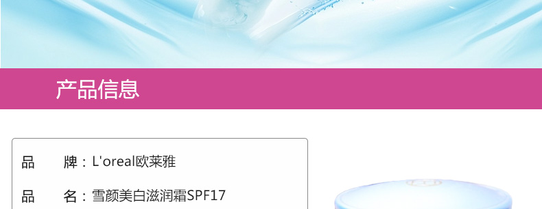 歐萊雅雪顏美白滋潤霜SPF17 粉嫩透白日霜 淡斑保濕霜50ml |