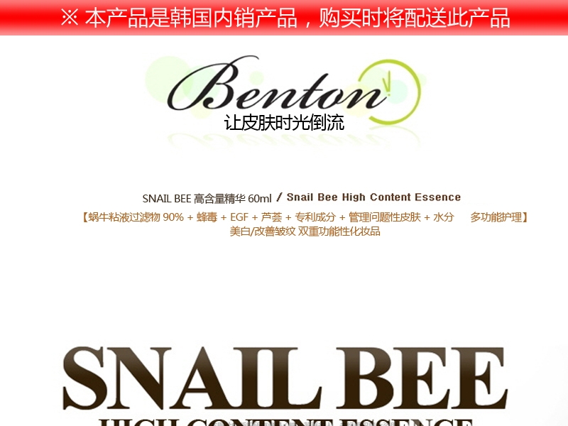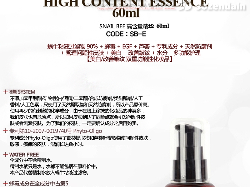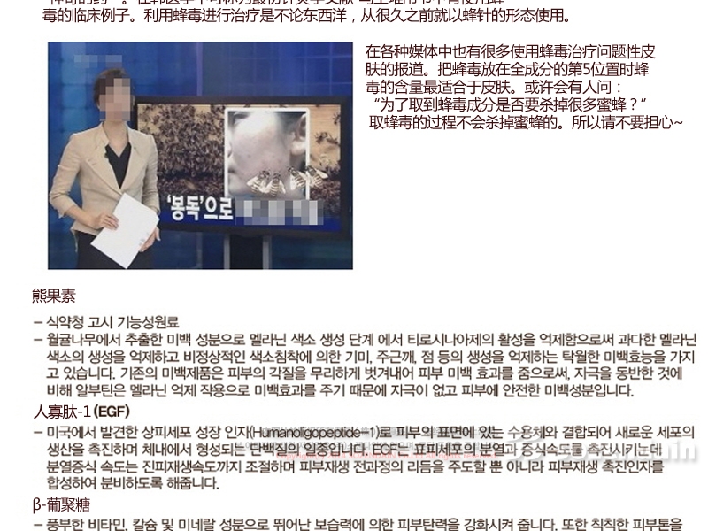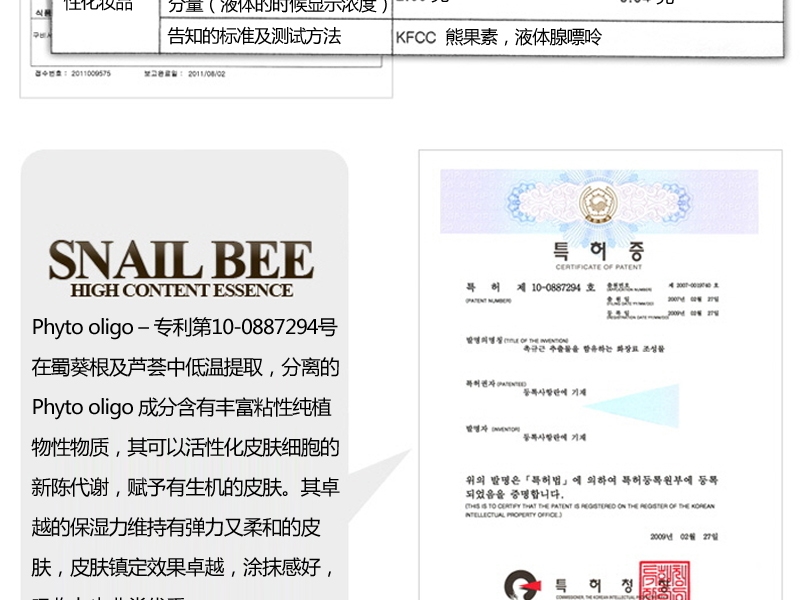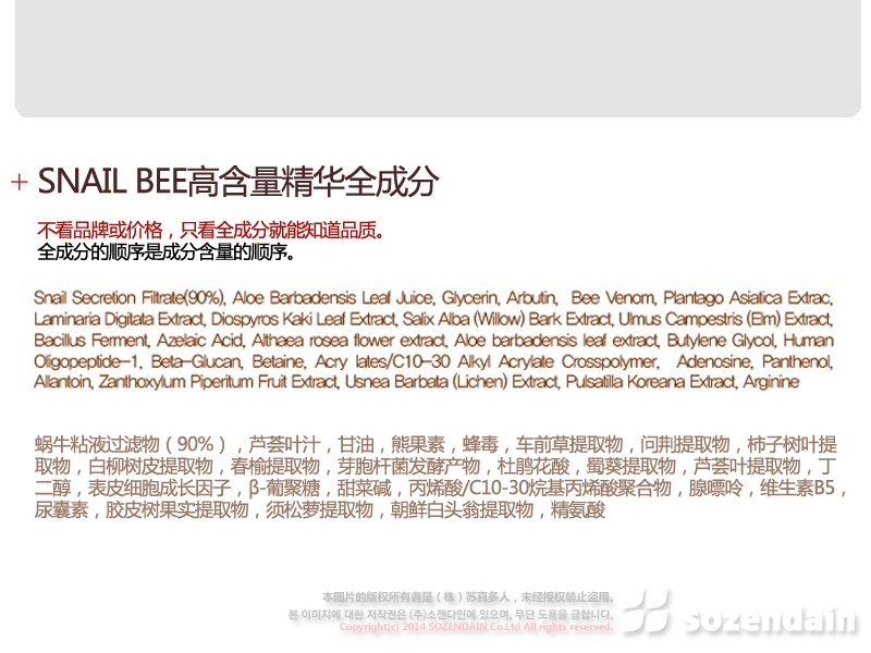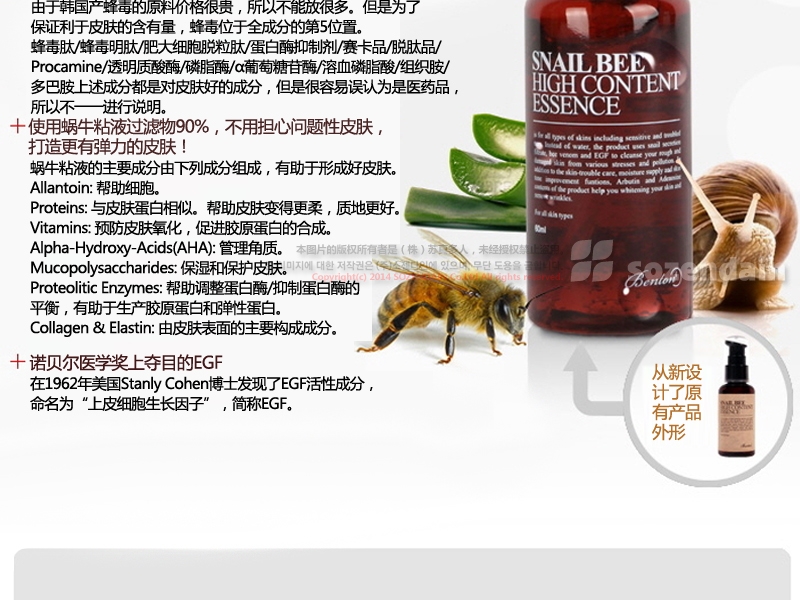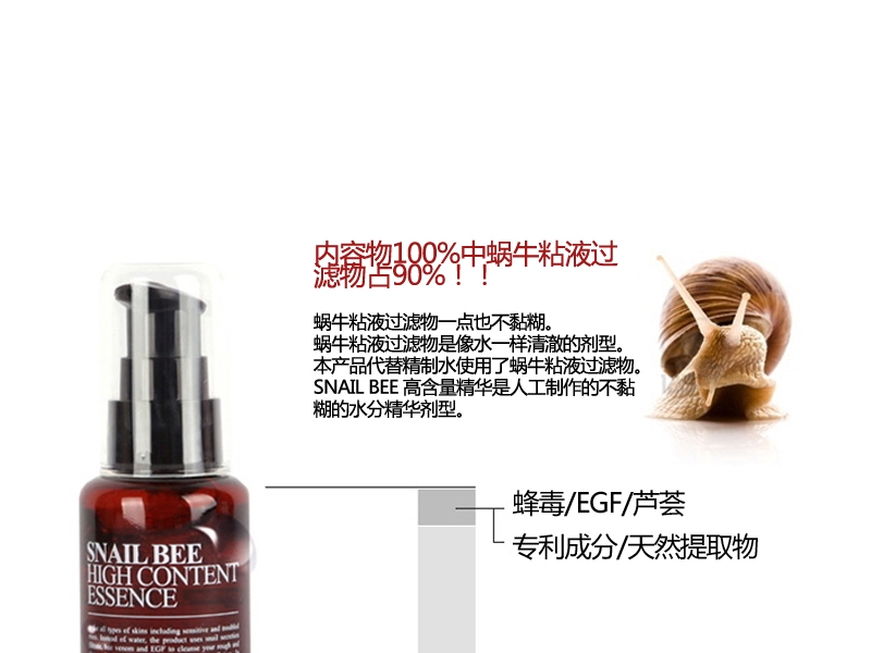 | 主要成分 | 蝸牛粘液過濾物,蜂毒,EGF,蘆薈 |