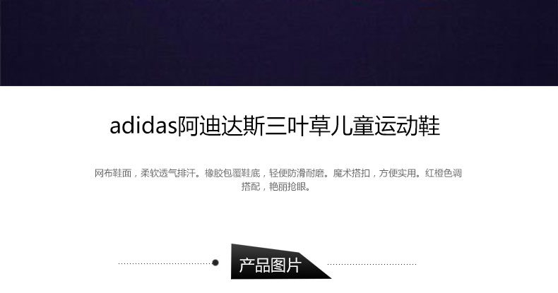 Adidas阿迪達斯三葉草兒童運動鞋 m25894 4-9歲 網布鞋面 橡膠包覆鞋底 輕便防滑 中性—— 1.網布鞋面,柔軟透氣排汗。 2.橡膠包覆鞋底,輕便防滑耐磨。 3.魔術搭扣,方便實用。 |