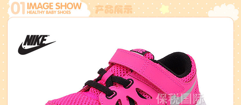 Nike耐克 女式 清涼透氣網面便捷魔術貼輕便嬰兒鞋 0.5-3歲—— 軟底軟面,大空間,且不會脫落,非常利于孩子腳步的發育。 |
