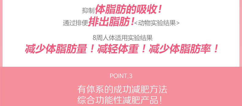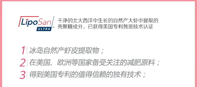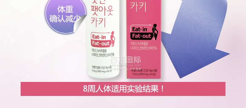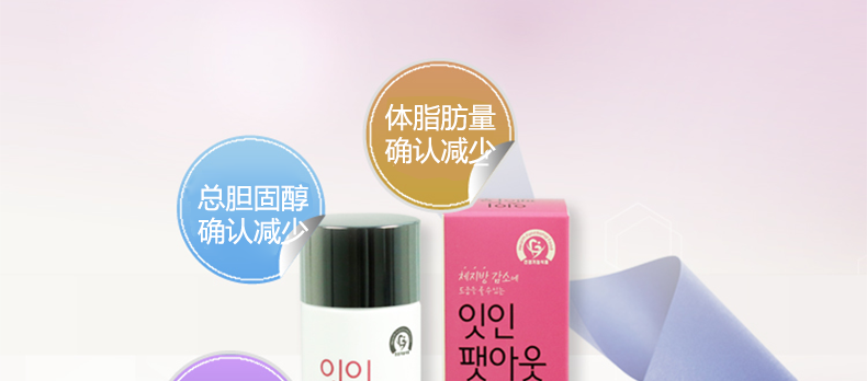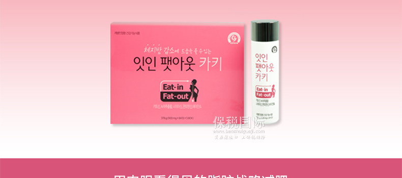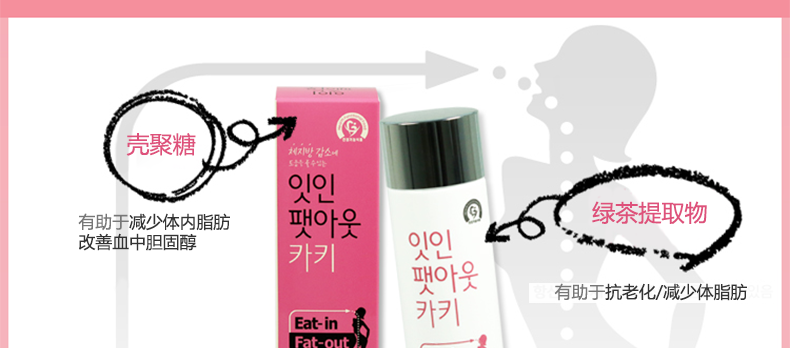 韓國 Eat-in Fat-out卡其瘦身產品殼聚糖脂肪減肥健康瘦身—— 1、含殼聚糖成分,有助于減少體內脂肪并改善血液中膽固醇含量; 2、含有綠茶提取物,有助于抗老化,減少體脂肪; 3、含有煙酰胺,促進體內新陳代謝。 |