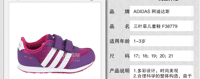 Adidas阿迪達(dá)斯三葉草兒童鞋 f38779 1-3歲 輕便 防滑 時(shí)尚 |