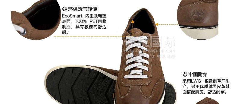 Timberland添柏嵐/天伯倫男鞋 休閑牛津鞋 男士棕色低幫鞋 9646A—— 1.內里及鞋墊表面,100%PET回收制成,具有極佳的舒適感。 2.環保防滑橡膠大底。 3.環保透氣輕便。 4.緩沖防震。 |