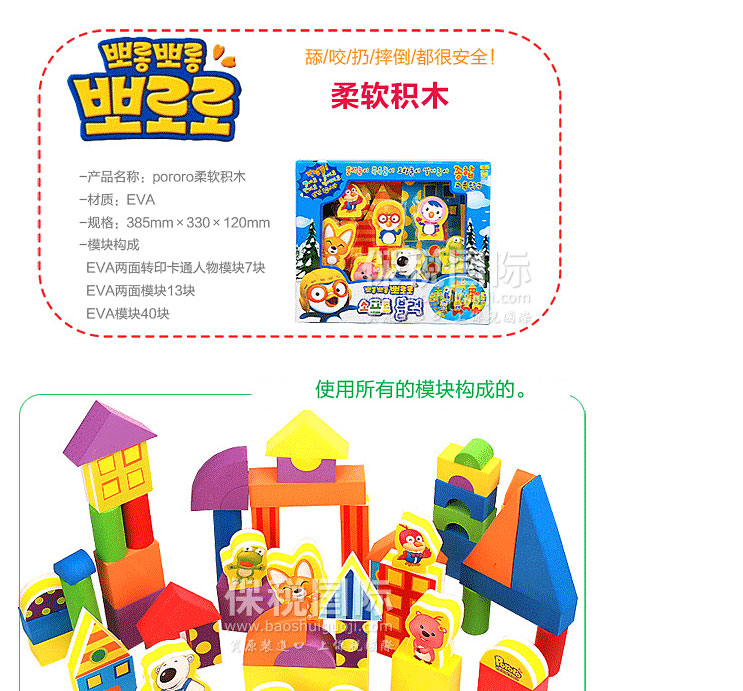 商品名稱 | 韓國pororo/寶露露兒童益智玩具柔軟積木 | ||