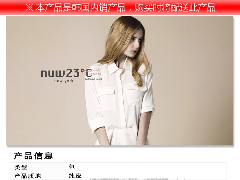 ![[韓國]NEW23度 Crossone 時尚手拿包單肩包斜挎包 純皮以及人造皮制作 紐約設計 兩色可選女包](http://img.baoshuiguoji.com/2015/01/14/9d2bb40085206a74ac95774ca7f15db2.jpg!smallpic)