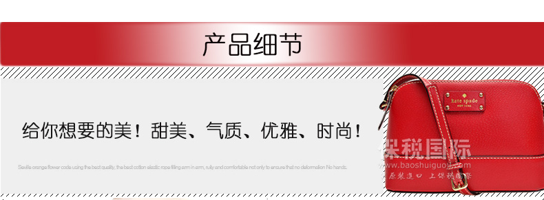 Kate Spade凱特·絲蓓 小號(hào)牛皮斜跨包 女士紅色貝殼包 WKRU2895紅色 —— KATE SPADE凱特絲蓓女包,簡(jiǎn)潔實(shí)用的內(nèi)部結(jié)構(gòu),經(jīng)典KATE SPADE logo設(shè)計(jì),契合了凱特絲蓓即時(shí)尚又實(shí)用的品牌設(shè)計(jì)理念。 |
