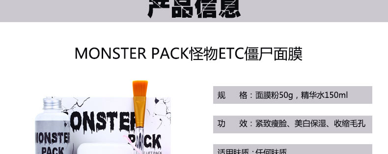 韓國(guó) MONSTER PACK怪獸怪物面膜粉ETC僵尸面膜 美白清潔毛孔 |