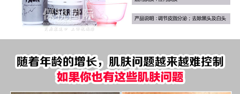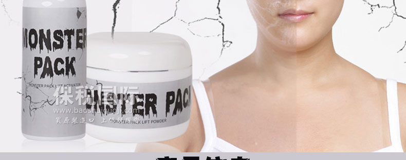 韓國(guó) MONSTER PACK怪獸怪物面膜粉ETC僵尸面膜 美白清潔毛孔—— 六大功效: 1、調(diào)節(jié)皮脂分泌; 2、去除黑頭及白頭; 3、補(bǔ)充水分; 4、收縮毛孔; 5、提亮膚色; 6、提拉臉部皮膚。 |