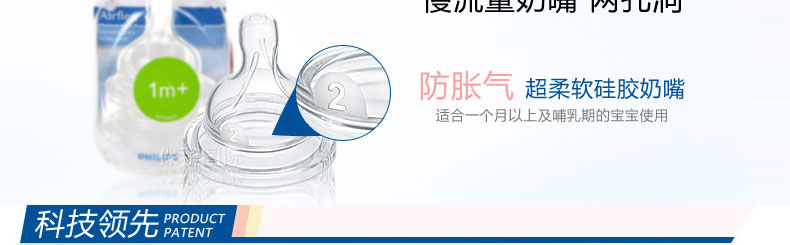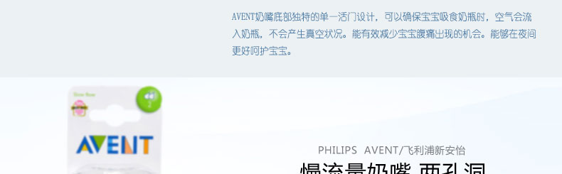 英國 Avent 飛利浦新安怡奶嘴 經(jīng)典寬口徑 防脹氣硅膠嬰兒奶嘴 2孔對裝 |