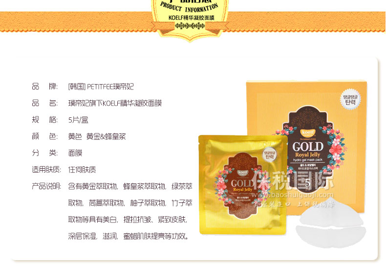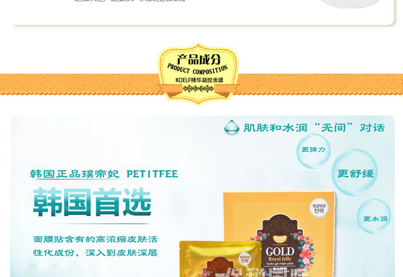 韓國(guó) 璞帝妃旗下KOELF精華凝膠面膜 黃金&蜂皇漿/珍珠&乳木果油 |