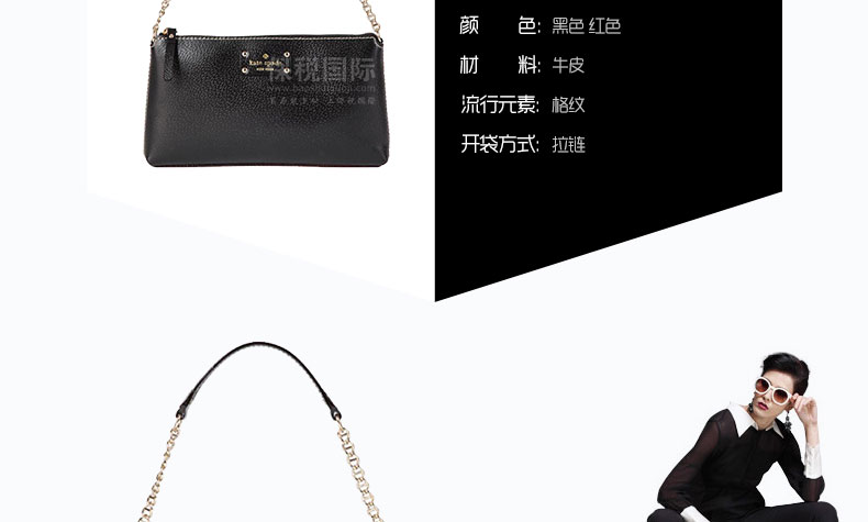 Kate Spade凱特絲蓓 真皮單肩包 女士手提鏈條包 黑色/紅色 WKRU1427—— 1.內部結構:1個拉鏈暗袋,1個多功能袋1個手機袋。 2.Kate Spade品牌包括手提包、鞋子以及配飾等,都十分受到年輕人的喜愛。 |