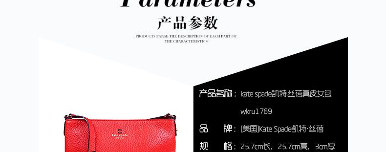 Kate Spade凱特·絲蓓 女士真皮單肩包 斜跨小包wkru1769—— 1.簡潔實用的內部結構,經典KATE SPADE logo設計,契合了凱特絲蓓即時尚又實用的品牌設計理念。 2.Kate Spade品牌包括手提包、鞋子以及配飾等,都十分受到年輕人的喜愛。 |
