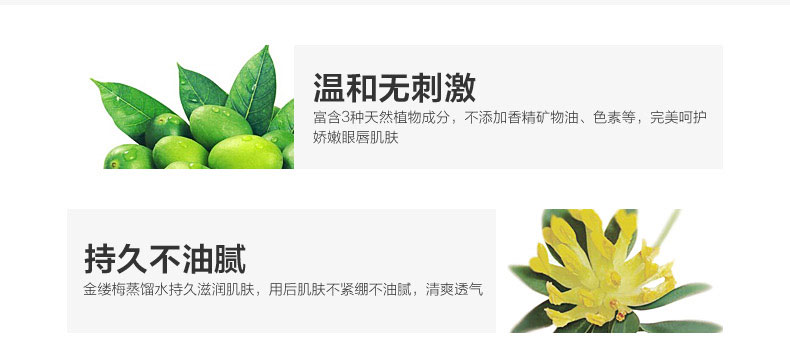 1.深層清潔,蘊(yùn)含天然潔膚素,卸妝功效顯著,能充份滲入肌膚深層,溶化并徹底清除毛孔中的污垢、化妝殘漬及難去除的眼睫毛液。