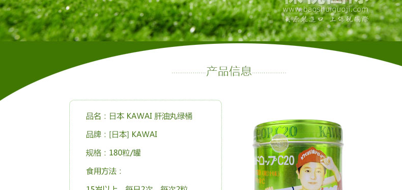 日本 可愛KAWAI 嬰幼兒魚油肝油丸 綠桶維他命C20 果汁味咀嚼糖丸180粒—— 1.無腥味,口感好,服用方便; 2.完全乳化,易吸收; 3.無色素,無糖精,無防腐劑; |