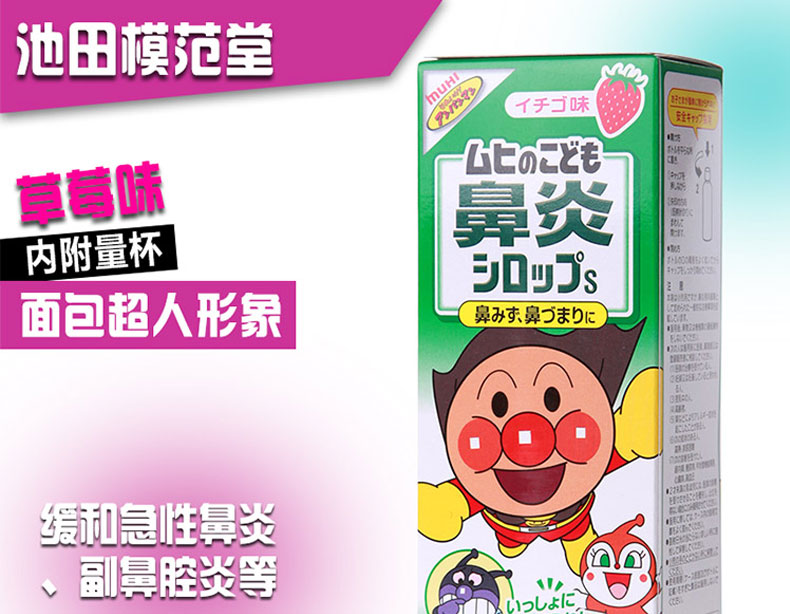 日本 池田模范堂 面包超人嬰兒兒童感冒鼻炎糖漿藥水 草莓味120ml |