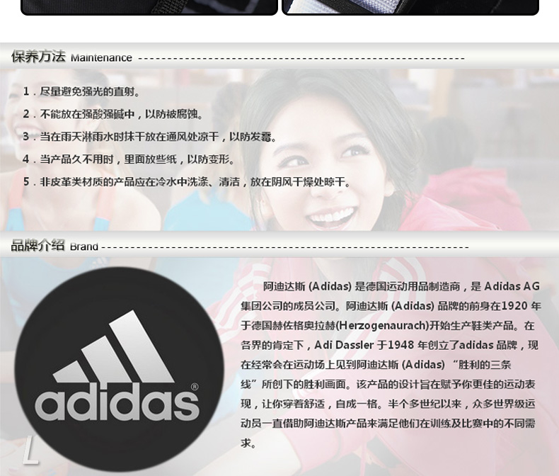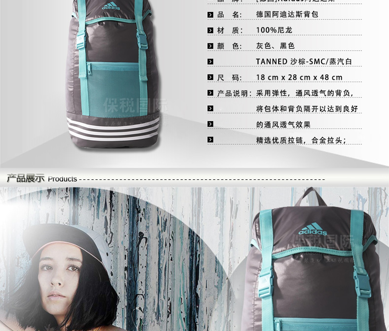 德國adidas阿迪達斯背包雙肩包書包電腦包M65389,M65388—— 1、采用彈性,通風透氣的背負,將包體和背負隔開以達到良好的通風透氣效果; 2、品牌LOGO,彰顯品牌價值; 3、精選優質拉鏈,合金拉頭; 4、肩帶設計,肩帶加了透氣棉,減輕肩部負荷。 |
