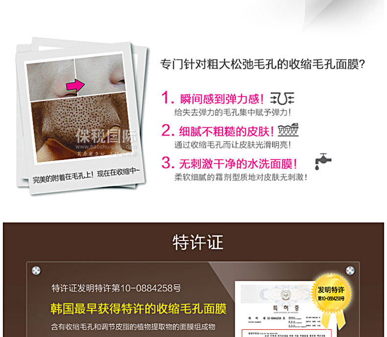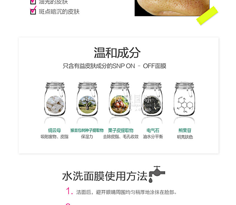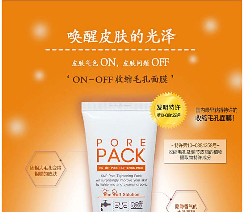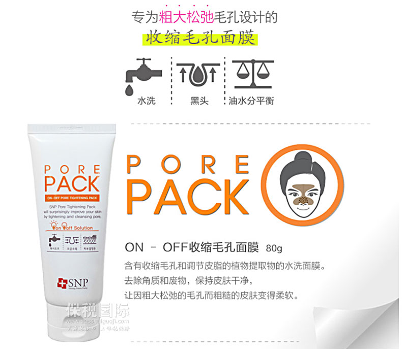 韓國 SNP 天然配方收縮毛孔水洗面膜 80g—— 1.瞬間感到彈力感,給失去彈力的毛孔集中賦予彈力。 2.細膩不粗糙的皮膚,通過收縮毛孔而讓皮膚光滑明亮。 3.無刺激的干凈的水洗面膜,柔軟細微的霜劑型對皮膚無刺激。 |