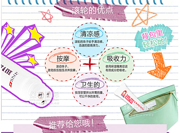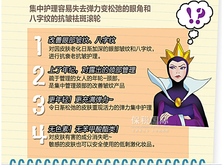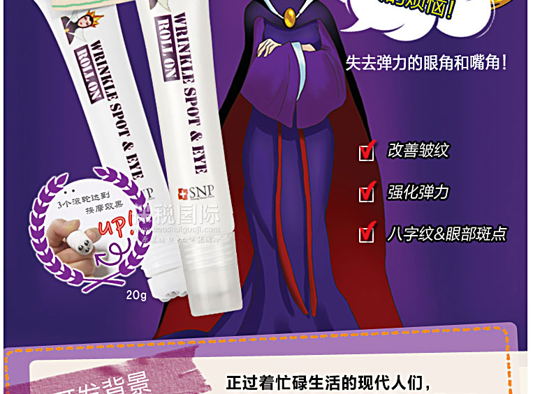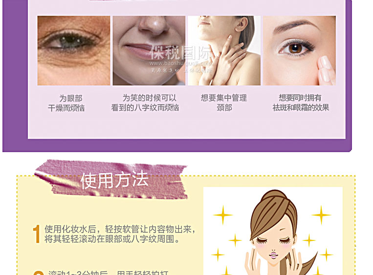 集中護理容易失去彈力變松弛的眼角 和 八字紋的抗皺祛斑滾輪 |