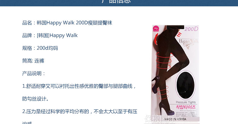 韓國 Happy Walk 200D 瘦腿提臀襪 高彈力瘦身連褲襪 保暖瘦腿襪—— 1.舒適耐穿又可以襯托出性感優(yōu)雅的臀部與腿部曲線,防勾絲設(shè)計(jì)。 2.壓力是經(jīng)過科學(xué)的平均分布的,不會(huì)太大以至于有壓迫感。 |