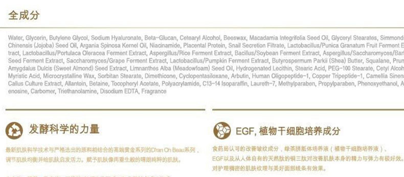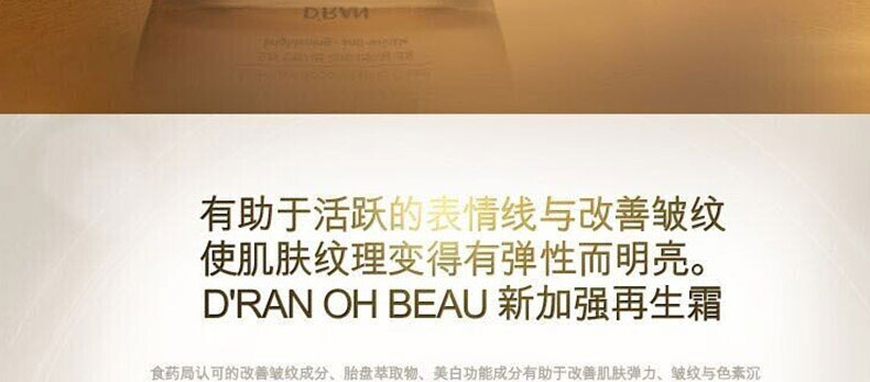 韓國 D'ran 諦瀼 黃金再生面霜 賦活抗皺 深層滋潤面霜 50g—— 1.幫助肌膚再生,逆轉肌膚時間的營養面霜。 2.活性金有效對抗各種衰老誘因,化解暗黃,增強肌膚修復能力,幫助肌膚保持白皙緊致。 3.加速肌膚更新能力,淡化細紋,延緩肌膚衰老,重現肌膚充盈彈力,恢復緊致青春。 |