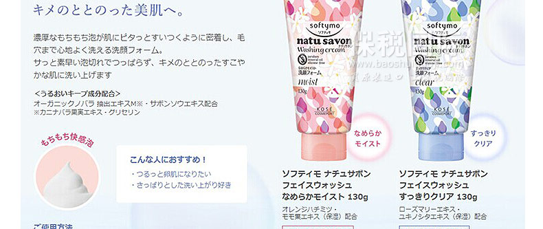 KOSE高絲Softymo 清潔毛孔潔面膏 美肌洗顏—— 1.大量豐富的泡沫,輕輕包裹灰塵的皮膚,充分洗凈皮膚,健康細膩。 2.采用有機植物提取的精華成分,柔和不刺激,從內改善肌膚問題。純自然傳統配方,無添加。 |